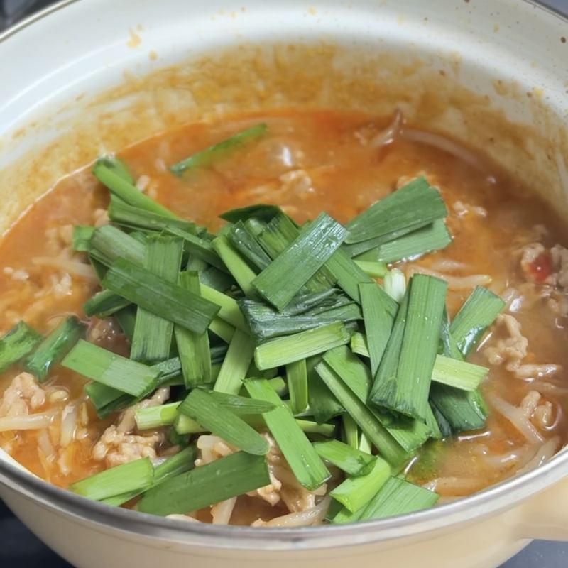 ④とろみがついたら、にらを切り入れる。